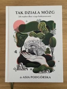 Zainteresowanie neurobiologią oraz wpływem funkcjonowania mózgu na nasze ciało oraz umysł w ostatnich czasach bardzo wzrosło. A dr Joanna Podgórska dzieli się tą wiedzą w bardzo interesujący, ale i przystępny sposób. W książce „Tak działa mózg- jak mądrze dbać o jego funkcjonowanie” znajdziemy najważniejsze informacje o mechanizmach funkcjonowania układu nerwowego, mózgu, neuroprzekaźnikach, a także procesach pamięci, podejmowania decyzji, czy reakcji emocjonalnej z punktu widzenia neurobiologii. Druga część książki skupia się na zależnościach między stylem naszego życia, a funkcjonowaniem mózgu i naszym samopoczuciem. Dr Asia Podgórska wskazuje między innymi na to, co cukier robi z naszym mózgiem, jaki ma to wpływ na ewentualny rozwój chorób neurodegeneracyjnych oraz jak zdrowo odżywiać nasz mózg. Z książki możemy się również dowiedzieć jak ważny jest sen i regeneracja oraz dlaczego nasz mózg nie lubi alkoholu i papierosów. Książkę zamyka rozdział dotyczący istoty ruchu i aktywności fizycznej – w kontekście samego układu nerwowego i mózgu, ale również naszej kondycji psychicznej. Książka nie należy do tych „lekkich, na jeden wieczór”, ale dosłownie kipi od ogromnej ilości wiedzy oraz badań naukowych, ponieważ każde teorie są tutaj poparte konkretnymi badaniami i merytorycznymi wnioskami. To, co jest bardzo dużą wartością tej ksiażki (i zresztą całym stylu przekazywania wiedzy dr Podgórskiej) to holistyczne spojrzenia na człowieka. Praktycznie na każdym kroku jest podkreślane to, jak stan naszego mózgu wpływa na naszą kondycję psychiczną oraz fizyczną, ale również jak tryb życia, odżywianie, ruch, kondycja poszczególnych organów oddziałuje funkcjonowanie naszego mózgu i nasze samopoczucie.